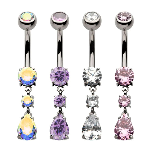 Titanium Internally Threaded Bezel Set Top with CZ Dangle Navel Ring