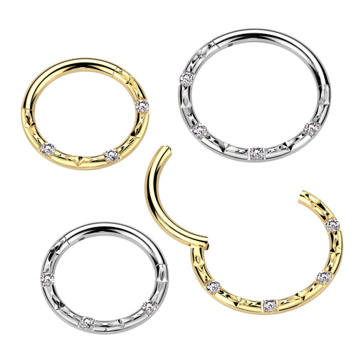Titanium Hinged Segment Hoop Ring With CNC Set CZ and Faceted Cuts 1.2x10mm