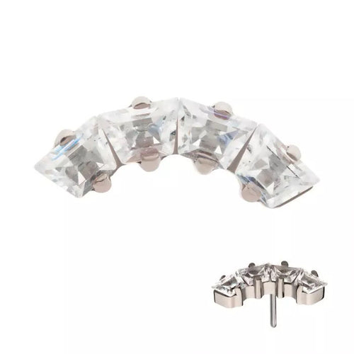 Titanium Threadless Prong Set Trapezoid CZ 4-Cluster Labret - Initial Piercing