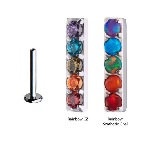 Initial Piercing - 5 synthetic opal or crystal Labret