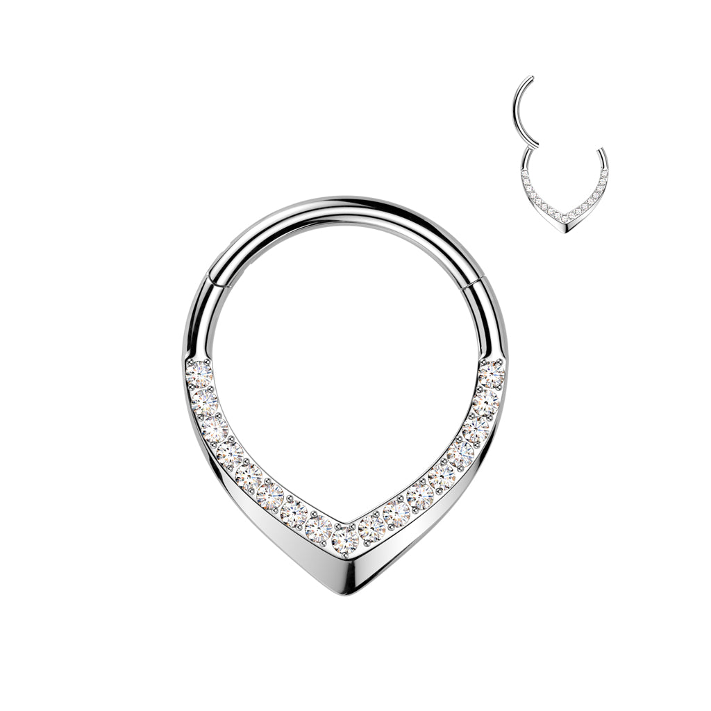 Implant Grade Titanium Hinged Segment Hoop Ring With Pave CZ Single Line cz