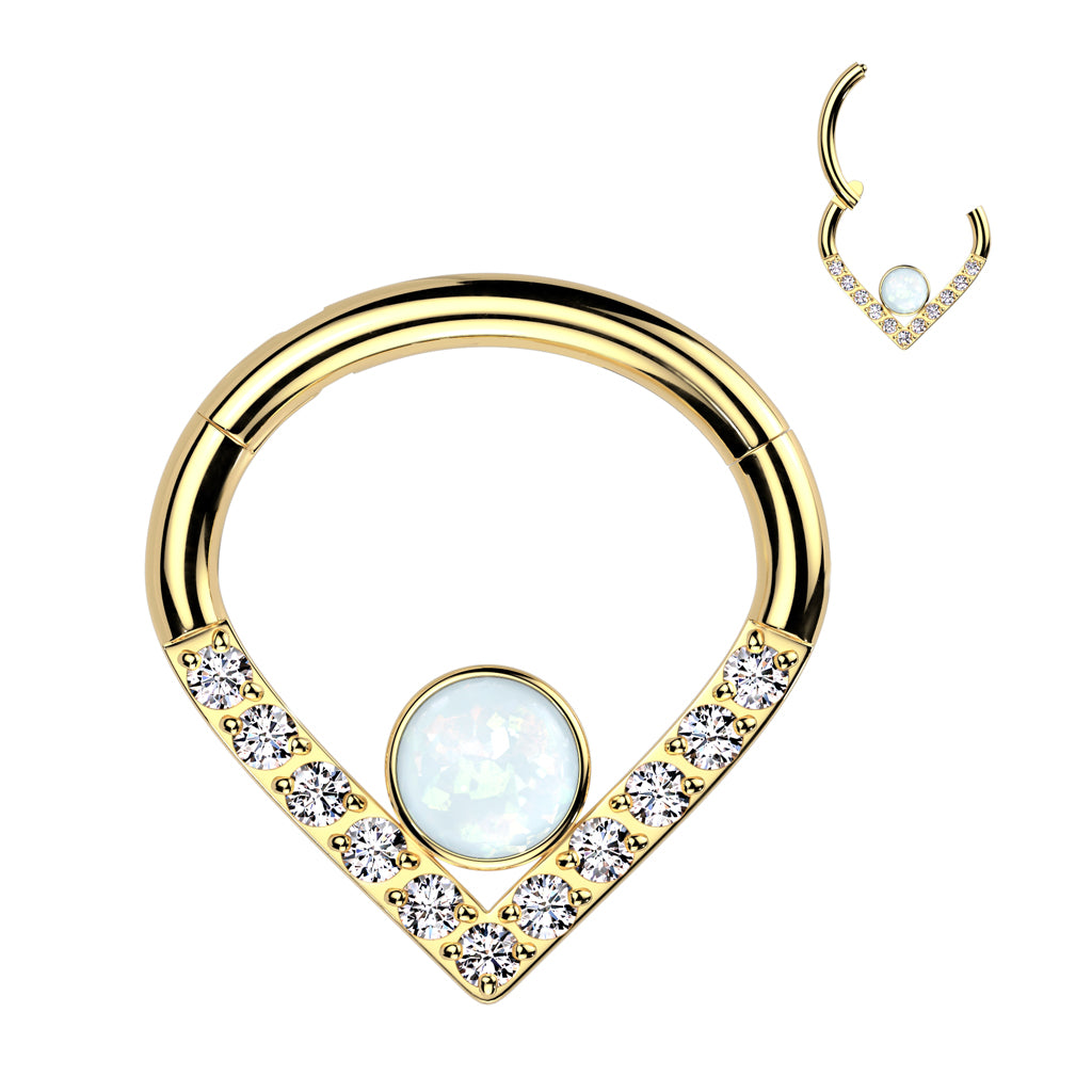 Implant Grade Titanium Hinged Segment Hoop Ring With Pave CZ Single Line cz and synthetic Opal Center