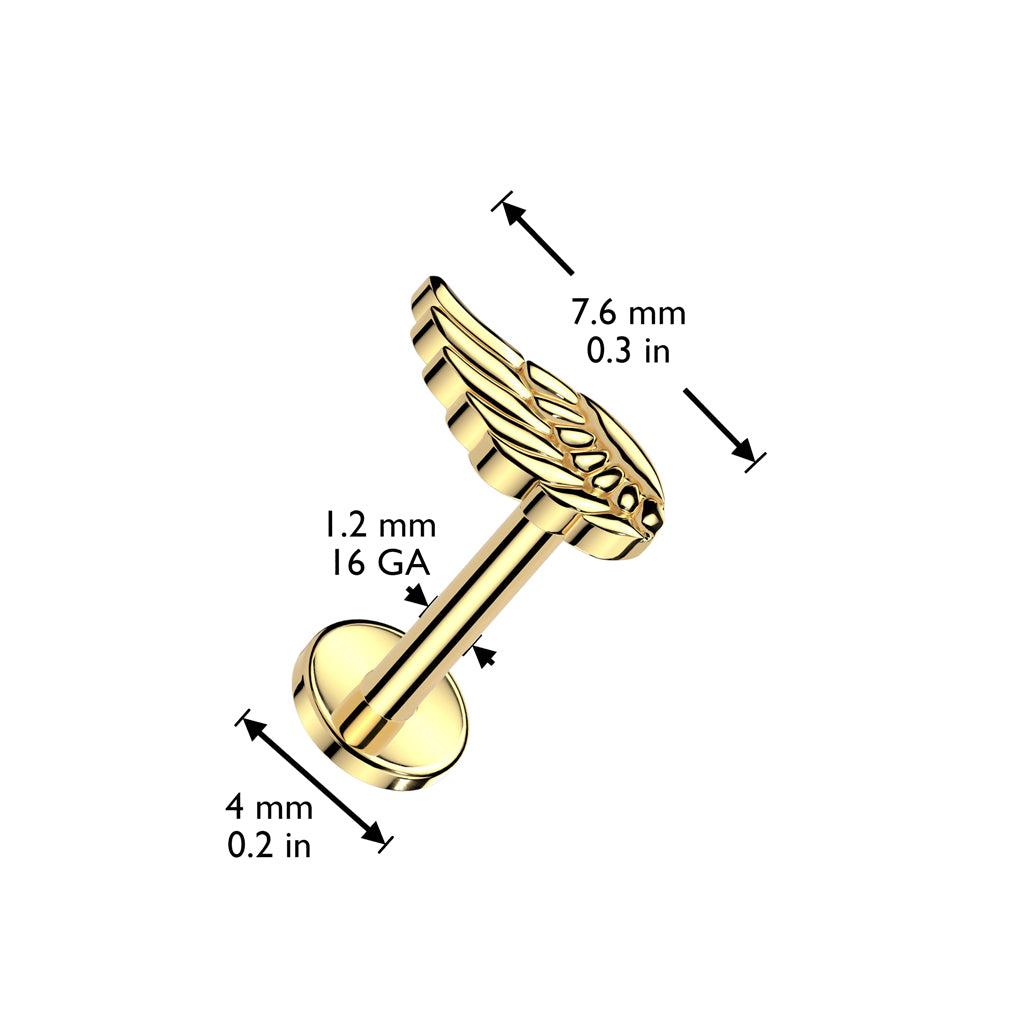 Implant Grade Titanium Internally Threaded Labret, Flat Back Stud With Angel Wing Top 1.2x8mm